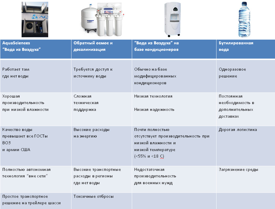 | Сравнение Технологий Производства и Доставки Воды в Полевых Условиях |